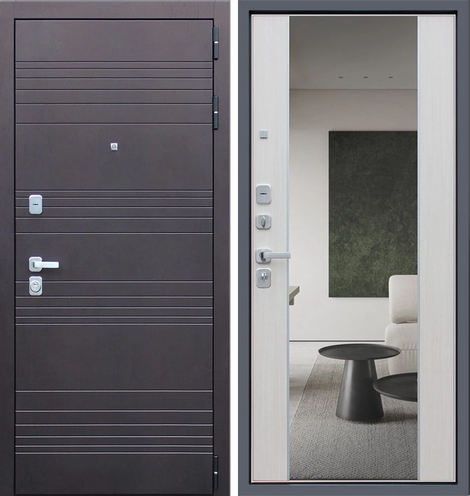 Надежная входная Дверь Дуэт с зеркалом премиум класса по цене 46 673 руб. Большая толщина стали защитит от проникновения в ваш дом, квартиру или коттедж. Используется очень качественная фурнитура: замки, цилиндры, ручки, защелки. Покрытие и отделка двери изготовлено под внимательным контролем производителя. Дверь имеет долгий срок службы и гарантию.